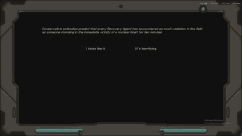 You are a Nuclear Recovery Agent. Your mission is to explore a long abandoned Cold War research facility where scientists encountered a supernatural entity, and to secure the caches of uranium left behind. We don't know what to expect. Best of luck.